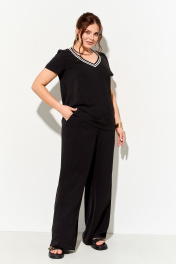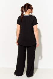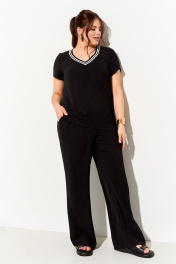 Костюм женский, состоящий из туники и брюк, выполнен из легкой струщейся ткани. Туника свободного силуэта со втачными рукавами; линия горловины с V-образным вырезом и контрастным довязом. Брюки классические, прямого кроя, в боковых швах функциональные карманы, пояс притачной полностью на резинке. Костюм полностью соответсвтует заявленному размеру. Пользуйтесь таблицей замеров готового изделия. Уход за натуральными тканями: - рекомендуется бережная стирка при температуре 30 градусов; - глажение при температуре прессующей поверности не выше 110 градусов.