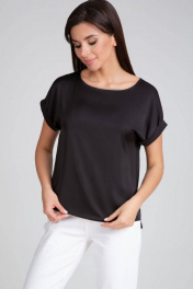 Блуза из искусственного шелка атласный крой с вырезом горловины IVARI 402 черный