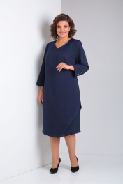 Платье прямого силуэта из текстиля и шифона, синее, нарядное Ивелта плюс 1779
