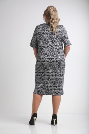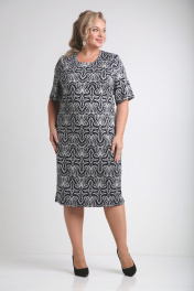 Платье прямого силуэта, слегка заужено к низу, выполнено из трикотажного полотна с дизайном. Горловина округлая, обработана бейкой.По низу по боковым выполнены разрезы.Рукав втачной, выше локтя.Подойдёт как для повседневной жизни так и для мероприятий. Длина изделия по среднему шву спинки 110 см, ширина изделия под проймой- 55/57/59, ширина по линии бёдер- 57/59/61, ширина плеча 12 см, длина рукава 32,5 см, ширина рукава- 19/20/21.