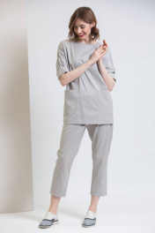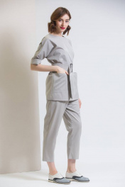 Укороченные брюки зауженные к низу, пояс на резинке. На передних частях брюк боковые карманы с отрезным бочком. С жакетом арт.535 брюки создают образ для деловой встречи или вечернего выхода.