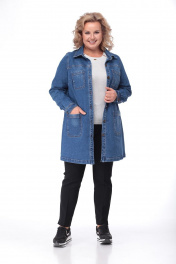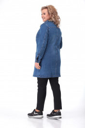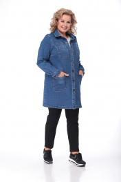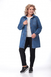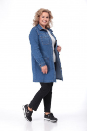 Жакет удлиненный прямого силуэта без подкладки с застежкой петли/пуговицы(болты). По полочкам изделия расположены четыре накладных кармана. На полочках и спинке имеются кокетки, воротник с отрезной стойкой, рукава с ман жетой на застежке.петли/пуговыцы (болты) р-р 44-48:длина по спинке-82 см.,рукав-59см. р-р 50-60:длина по спинке-87см, рукав-61см. бедра 96-128 см. (соотв.р-ру) грудь 88-120 см. (соотв.р-ру) 62р: ог 126, от 126, об 134 В производстве изделий использована джинсовая ткань плотностью 11,5 унций и фурнитура ведущих производителей Турции.