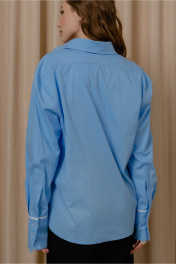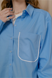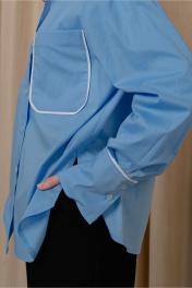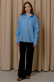 Демисезонная рубашка из полосчатой ткани с накладным карманом и разрезами JRSy 2305 голубой