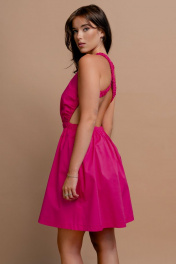 Летнее платье из хлопка с резинкой по лициию и бретелями JRSy 2345 фуксия