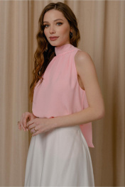 Топ женский молодежный из ткани шифон ,без застежки прямого силуэта ,с завязкой воротника бант по спинке.Перед и спинка двойные. По переду сборка по линии горловины,форма проймы реглан.Воротник шарф. Длина спинки 62 см ширина по пройме 53,55,57см. (42,44,46,рр) ширина по талии 52,5,54,5,56,5 см ширина по низу 55,57,59см.