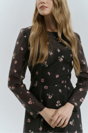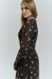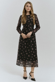 Платье женское из ткани тенсель( волокна эвкалипта) с принтом на хлопковой подкладке.Приталенного силуэта, рукав рубашечного типа длиной до запястья.Перед с талиевыми вытачками ,и нагрудными. Отрезное по линии талии ,с застежкой молнией в среднем шве спинки. Длина платья 124 см, ширина на уровне глубины проймы 45,47,49,51см (42,44,46,48рр.), ширина по талии 33,35,37,39см (42,44,46,48рр), ширина по бедрам 53,55,57,59см соответственно. Длина рукава 58,5 см .
