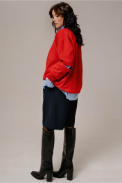 Джемпер объемный с довязами и спущенной линией плеч JRSy 2523 красный