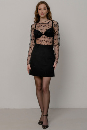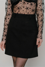 Юбка трапеция из костюмной ткани с застежкой-молнией JRSy 2524 черный_со_стразами