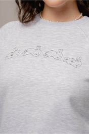 Джемпер прямого силуэта ,рукав реглан. По переду принт "rabbit" джемпер длина 64см. ширина по линии груди 56,58,60,62см. (42,44,46,48рр) ширина по низу 51,53,55,57см . Длина рукава от горловины 73см