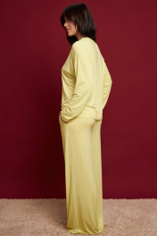 Брюки молодежные прямого силуэта изтрикотажного вискозного полотна - однотон, на притачном поясе с эластичной тесьмой,шнурок, и наклонными карманами спереди, и иммитацией гульфика. Длина по боковому шву 104 см, ширина по талии в стянутом виде 32,34,36,38см (42,44,46,48рр) ширина по бедрам 52,5;54,5;56,5;58,5см ширина по низу 32,5 см соответственно