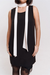 Платье молодежное слегка О образного силуэта без рукавов на подкладке ,с застежкой молнией в левом боковом шве и декором длинный шарф из шифона контрастного цвета.Перед с рельефами переходящими в карманы ниже линии талии.Вырез по переду Uобразный. В комплекте идет подьюбник( отдельно)с фигурным низом из шелка Армани и кружевом Юбка женская прямого силуэта,с фигурной линией низа,без застежки,из шелка однотон,с эластичной тесьмой по верху шириной 1 см. По низу изделия пратачано кружево мини Платье длина 84см. ширина на уровне глубины проймы 51,53,55 см (42,44,46рр) ширина на уровне бедер 56,58,60см, на уровне талии 52,54,56см соответственно. подьюбник Длина по переду с кружевом -44 см, длина по углам юбки-51 см ширина по талии в стянутом виде 33,35,37см (42,44,46рр) , ширина по бедрам 51,53 ,55см соответственно