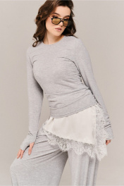 срок пошива модели 5 дней Джемпер молодежный из трикотажного полотна прилегающего силуэта,без застежки.с удлиненным рукавом рубашечного типа и с прорезями для пальца. Перед и спинка со стяжками по боковым швам и драпировкой. Длина 57 см. ширина по линии груди 42,44,46 см. ( 42,44,46 рр) ширина по талии 35,37,39 см Длина рукава 70см .