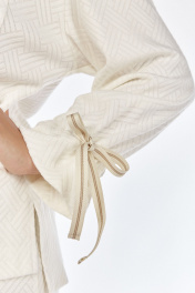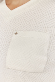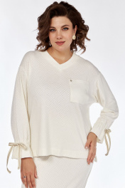 Костюм женский 2х — предметный выполнен из ажурного трикотажного полотна. Состоит из джемпера и юбки. Джемпер свободного силуэта горловина V-образной формы. По переду накладной карман. В боковых швах разрезы. Рукава спущенные, к низу обработана кулиса с декоративной тесьмой. Низ джемпера с перепадом длины. Юбка зауженная к низу, пояс цельнокроеный на резинке. Юбка на подкладке. Обращаем Ваше внимание, что цвет на экране может отличаться от реального. Длина джемпера по спинке — 62 см, длина плеча + рукав — 67 см. р.52 ПОГ 58 см ПОБ 60 см, р.54 — ПОГ 60 см ПОБ 62 см, р.56 — ПОГ 62 см ПОБ 64 см. Длина юбки — 90 см. р.52 — ПОТ 37 см ПОБ 55 см, р.54 — ПОТ 39 см ПОБ 57 см, р.56 — ПОТ 41 см ПОБ 59 см.