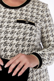 Платье женское, полуприлегающего силуэта. Выполнено из трикотажного полотна. Горловина округлой формы обработана декоративным довязом. По переду нагрудные вытачки и прорезная листочка. В боковых швах обработаны карманы. Спинка со средним швом в котором обработана шлица. Рукава втачные одношовные на декоративном манжете. Платье на подкладке. Обращаем Ваше внимание, что цвет на экране может отличаться от реального. Описание Длина платья по спинке — 105 см, длина рукава — 62 см, длина плеча — 13 см. р.52 — ПОГ 55 см ПОБ 58 см, р.54 — ПОГ 57 см ПОБ 60 см, р.56 — ПОГ 59 см ПОБ 62 см.