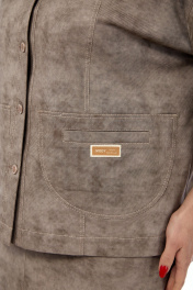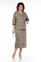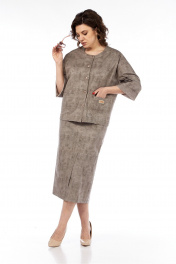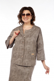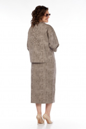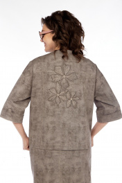 Костюм женский 2х-предметный, состоит из жакета и юбки, выполнен из хлопковой костюмной ткани. Жакет прямого силуэта, с центральной бортовой застежкой на петли и джинсовые пуговицы. Горловина округлой формы с отрезной обтачкой. По переду обработаны рельефы и накладные детали фигурной формы, в которых выполнены карманы. На спинке обработаны рельефы и кокетка. Рукава спущенные, с широкой подгибкой низа. Изделие дополнено по спинке дизайнерской вышивкой. Юбка прямого силуэта с притачным поясом, с застежкой на петлю с пуговицей и молнию. Передние и задние детали юбки разрезные. По переду обработаны боковые карманы. Обращаем Ваше внимание, что цвет на экране может отличаться от реального. Длина жакета по спинке — 61 см, длина плеча + рукав — 55 см. р.52 — ПОГ 61 см ПОБ 63 см, р.54 — ПОГ 63 см ПОБ 65 см, р.56 — ПОГ 65 см ПОБ 67 см, р.58 — ПОГ 67 см ПОБ 69 см. Длина юбки — 86 см. р.52 — ПОТ 43 см ПОБ 57 см, р.54 — ПОТ 45 см ПОБ 59 см, р.56 — ПОТ 47 см ПОБ 61 см, р.58 — ПОТ 49 см ПОБ 63 см.