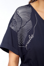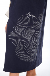Платье женское, прямого силуэта из плательной ткани. Горловина фигурной формы. По переду средний шов с разрезом внизу. Платье отрезное по талии с кулисой. Обработаны накладные карманы. Рукава спущенные. По спинке кокетка с декоративным элементом и средний шов. Платье декорировано печатью. Обращаем Ваше внимание, что цвет на экране может отличаться от реального. Длина платья по спинке — 129 см, длина плеча + рукав — 36 см. р.52 — ПОГ 61 см ПОБ 60 см, р.54 — ПОГ 63 см ПОБ 62 см, р.56 — ПОГ 65 см ПОБ 64 см, р.58 — ПОГ 67 см ПОБ 66 см.