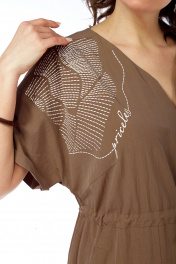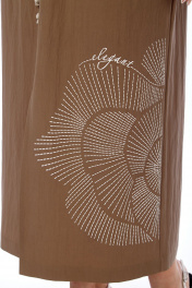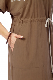 Платье женское, прямого силуэта из плательной ткани. Горловина фигурной формы. По переду средний шов с разрезом внизу. Платье отрезное по талии с кулисой. Обработаны накладные карманы. Рукава спущенные. По спинке кокетка с декоративным элементом и средний шов. Платье декорировано печатью. Обращаем Ваше внимание, что цвет на экране может отличаться от реального. Длина платья по спинке — 129 см, длина плеча + рукав — 36 см. р.52 — ПОГ 61 см ПОБ 60 см, р.54 — ПОГ 63 см ПОБ 62 см, р.56 — ПОГ 65 см ПОБ 64 см, р.58 — ПОГ 67 см ПОБ 66 см.