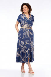 Платье женское, повседневное свободного силуэта, выполнено из легкой, натуральной ткани. Горловина V-образной формы с симметричными вырезами и планками. Перед с кокетками переходящими в цельнокроеные рукава, спинка с кокеткой и фигурным вырезом. По низу платья широкая оборка с разрезом по центру переда. В боковых швах обработаны карманы. Платье дополнено съемным ремнем. Обращаем Ваше внимание, что цвет на экране может отличаться от реального. Состав: вискоза — 100% Описание Длина платья по спинке — 130 см, длина плеча — 28 см. р.50 — ПОГ 55 см ПОБ 60 см, р.52 — ПОГ 57 см ПОБ 62 см, р.54 — ПОГ 59 см ПОБ 64 см, р.56 — ПОГ 61 см ПОБ 66 см.