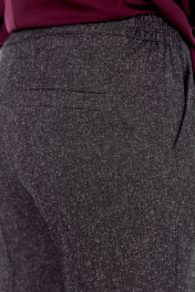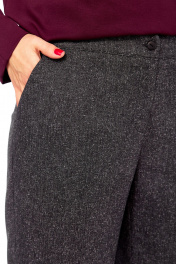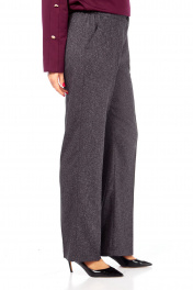 Брюки женские, выполнены из костюмной ткани, пояс притачной частично на резинке. Застежка на тесьму-молнию и петлю-пуговицу. В брюках обработаны карманы. Длина брюк по боковому шву — 107 см. р.52 — ПОТ 42 см ПОБ 56 см, р.54 — ПОТ 44 см ПОБ 58 см, р.56 — ПОТ 46 см ПОБ 60 см, р.58 — ПОТ 48 см ПОБ 62 см.