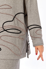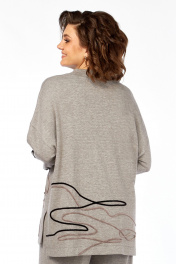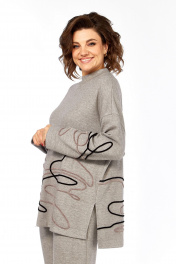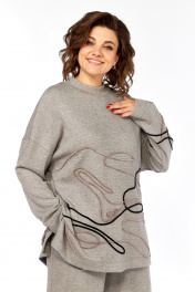 Джемпер женский, свободного кроя, изготовлен из трикотажного полотна. Горловина обработана воротником — стойкой по переду спинке и рукаву вышивка шнуром. В боковых швах внизу — разрезы. Рукава спущенные длинные. Длина джемпера по спинке — 71 см, длина плеча + рукав — 74 см. р.54 — ПОГ 64 см ПОБ 64 см, р.56 — ПОГ 66 см ПОБ 66 см, р.58 — ПОГ 68 см ПОБ 68 см, р.60 — ПОГ 70 см ПОБ 70 см.
