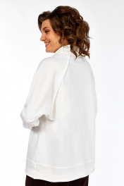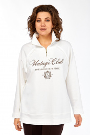 Комплект брючный двухпредметный, состоит из джемпера и брюк. Джемпер свободного силуэта изготовлен из хлопкового полотна, с воротником стойка на молнии. Перед и спинка в области бедер с декоративным подрезом. Рукава — реглан. Низ изделия,низ рукавов и швы втачивания рукавов выполнены необработанным срезом. Джемпер дополнен дизайнерской печатью. Брюки прямого силуэта с притачным поясом на эластичной тесьме. В передних деталях брюк обработаны боковые карманы и застрочены канты. Обращаем Ваше внимание, что цвет на экране может отличаться от реального. Состав: брюки: вискоза — 64%, нейлон — 32%, спандекс — 4%. Джемпер: хлопок — 95%, эластан — 5%. Описание Длина джемпера по спинке -68 см, длина плеча — 71 см. р.52 — ПОГ 62 см ПОБ 65 см, р.54 — ПОГ 64 см ПОБ 67 см, р.56 — ПОГ 66 см ПОБ 69 см, р.58 — ПОГ 68 см ПОБ 71 см. Длина брюк по боковому шву — 110 см. р.52 — ПОТ 37 см ПОБ 55 см, р.54 — ПОТ 39 см ПОБ 57 см, р.56 — ПОТ 41 см ПОБ 59 см, р.58 — ПОТ 43 см ПОБ 61 см.