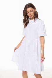 Платье женское, расширенное к низу, с завышенной линией талии. Перед декорирован авторской вышикой, обработана планка с застежкой на петли-пуговицы. Юбка платья состоит из двух ярусов. Горловина обработана воротником-стойкой. Рукав ""фонарик"" втачной, короткий. Декоративные элементы и фурнитура могут отличаться от заявленных на фото.