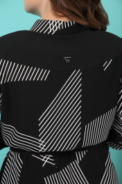 Комплект женский, состоит из туники и брюк. Туника прямого силуэта, с центральной застежкой на петли-пуговицы и воротником рубашечного типа. По боковым швам имеются разрезы. Рукав втачной одношовный с манжетой по низу. В комплете идет пояс. Брюки полуприлегающего силуэта с функциональными карманами спереди и накладными сзади Брюки с притачным поясом. Застежка на молнию и пуговицу.