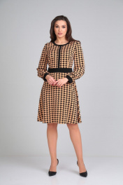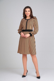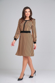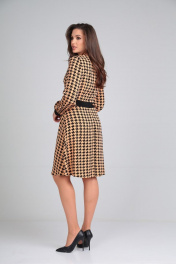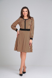 Платье женское полуприлегающего силуэта , с втачным рукавом . Линия талии отрезная , по переду лифа декоративная планка из контрастной ткани.