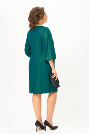 Нарядное платье выполнено из вискозной ткани с легким блеском. Платье имеет вырез лодочкой, который элегантно подчеркивает линию шеи. Объемные рукава добавляют романтичности и воздушности, создавая эффект легкой драпировки. Длина платья 97 см, длина рукава 47 см. Идеальный выбор для вечерних мероприятий и торжеств.