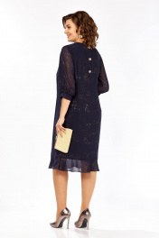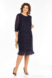 Платье женское на подкладке полуприлегающего силуэта с округлым вырезом горловины и притачным воланом по низу. По спинке застежка на планку с пуговицами. Рукав втачной одношовный с манжетой по низу. Длина платья 104 см, длина рукава 42 см, ширина рукава 24 см