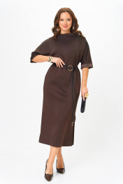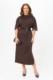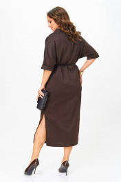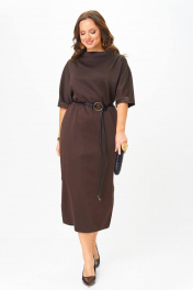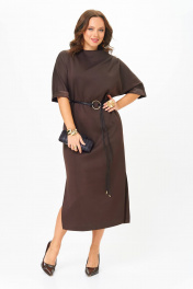 Платье прямого силуэта воротник стойка. Рукав короткий до линии локтя с манжетой из атласа. В боковых швах разрезы. Пояс в комплекте .