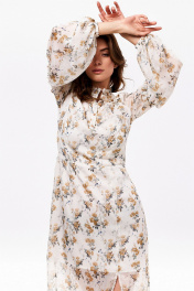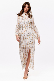 Платье макси с рельефами и рюшей из шифона и текстиля KaVaRi 1049.1 белый_принт_цветы