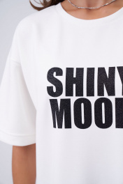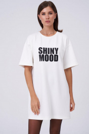 Платье-футболка из мягкого трикотажа с ярким, блестящим принтом «shiny mood»(блестящее настроение) Платье прямого силуэта со спущенным рукавом.