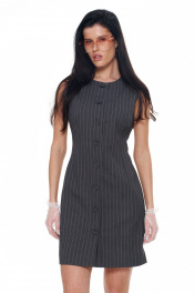Платье-сарафан мини полуприлегающего силуэта с вырезом каре по пореду и сзади. Низ платья стремится к легкой трапеции. Застежка по переду на петли-пуговицы. Длина по среднему шву 42-46р - 88см.