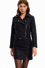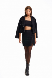 Юбка умеренного объема, прямого силуэта, немного зауженная книзу. Юбка без пояса, на обтачке. На переднем и заднем полотнищах юбки вытачки. На переднем полотнище рельеф с обработанным разрезом. На заднем полотнище средний шов с застежкой на потайную молнию. Юбка на притачной подкладке. Длина юбки выше колен. Длина изделия - 48,5 см