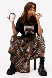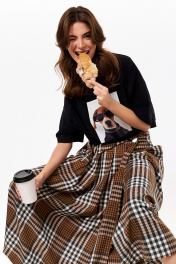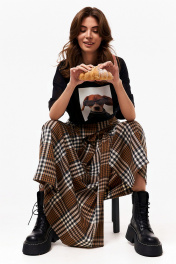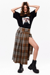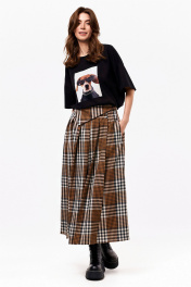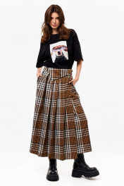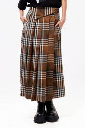 Юбка длины макси с асимметричным кроем на запах, со складками по переду. По поясу застёжка на пуговицы.