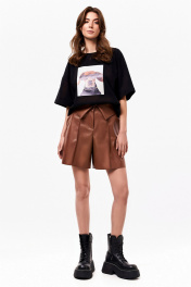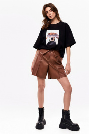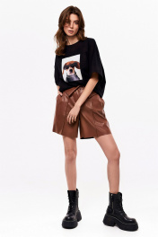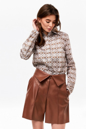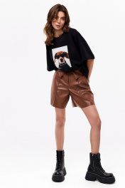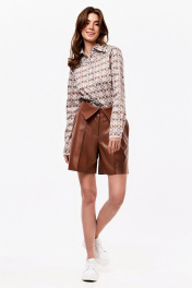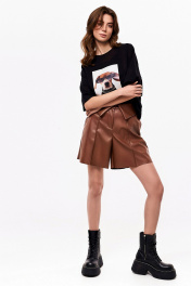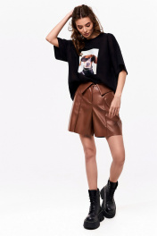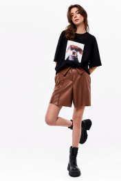 Демисезонные шорты из экокожи с карманами и разрезом KaVaRi 3008.1 коричневый