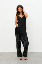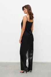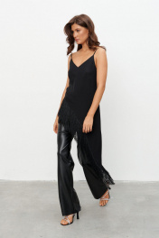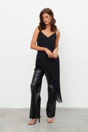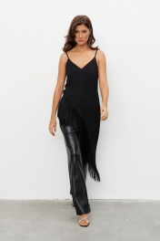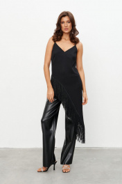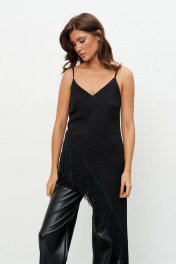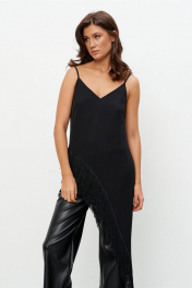 - ОписаниеТоп на бретелях с асимметричным низом, обрамлённым бахромой, выполнен из струящейся ткани. Длина бретелей регулируется. Длина по середине спинки 42-46р -85 см 48-52р -84 см