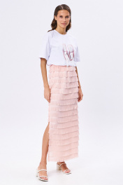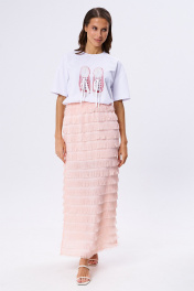 Юбка-макси и футболка с принтом на резинке KaVaRi 8030 белый-персик