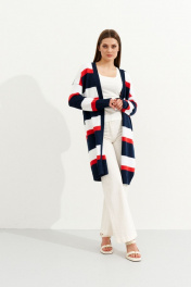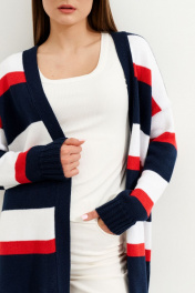 Размеры 44-46, 48-50,52-54 Женский вязаный длинный кардиган от бренда Ketty - отличное дополнение к вашему гардеробу. Универсальный кардиган прямого силуэта без застежек выполнен из хлопковой пряжи в морском стиле. Рукав длинный, пройма спущенная. Отлично сочетается с брюками, юбками, платьями и абсолютно всеми элементами одежды. При правильном уходе вязаный кардиган не теряет форму и не растягивается.