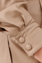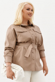 Жакет рубашка удлиненная от бренда Ketty из мягкой экокожи. Отложной воротник, накладные карманы на груди. Кожаная рубашка женская, свободного кроя в комплекте со съемным поясом. У Вас не возникнут воспросы с чем носить кожаную рубашку - стилизуйте ее застегнутой или нараспашку в качестве легкого жакета. В комплекте идёт съемный пояс из основной ткани.