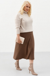 Модная трапециевидная юбка из шерсти и текстиля в гусиную лапку Ketty К-01750 коричневый