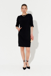 Черное кокон-платье из смесовой ткани с карманами Ketty K-18881 черный