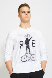Демисезонный белый лонгслив из хлопка и трикотажа Kivviwear 1009.01