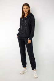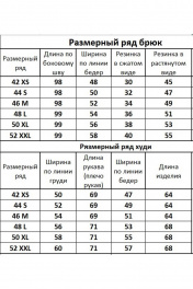 Костюм. Худи реглан капюшоном на подкладке из основной ткани. Брюки средней посадки с карманами в боковых швах. Обработка низа брюк манжета. Ткань футер (2-х ниточный футер) с внутренним слоем на петельной основе, качество Пенье, плотность 235 г.м2
