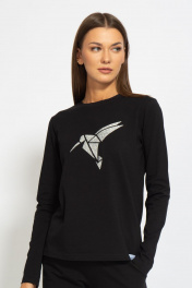 Черный хлопковый лонгслив для ежедневного стиля Kivviwear 4061.19