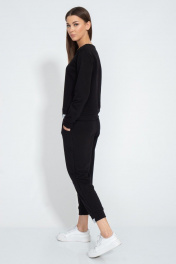 Брюки-джоггеры, укороченные, средней посадки, зауженные к низу с карманами в боковых швах. Обработка низа брюк манжета из основной ткани. Ткань футер 3-х ниточный с внутренним слоем на петельной основе, качество Пенье, плотность 435 г.м2. Максимально качественная ткань с софт текстурой.