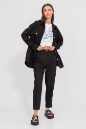 Костюм из укороченных брюк и блузы свободного силуэта, выполненный из джинсовой ткани «Тиффани», представляет собой стильное и комфортное сочетание для повседневной жизни. Брюки имеют укороченную длину, обеспечивая удобство и подчёркивая индивидуальность образа. Блуза свободного силуэта добавляет непринуждённости и лёгкости, позволяя экспериментировать с различными аксессуарами и обувью. Этот костюм идеально подходит для тех, кто ценит комфорт и хочет выглядеть стильно в любой ситуации. Только деликатная стирка 30 градусов, не использовать отбеливатели, изделие вывернуть наизнанку.
