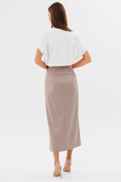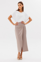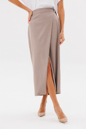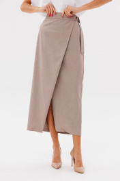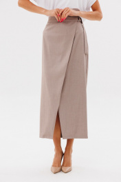 Бежевая юбка на запах из костюмной ткани с поясом Kivviwear 4231.02