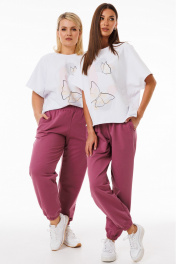Белый джемпер из футера с принтами свободного кроя Kivviwear 4267.09